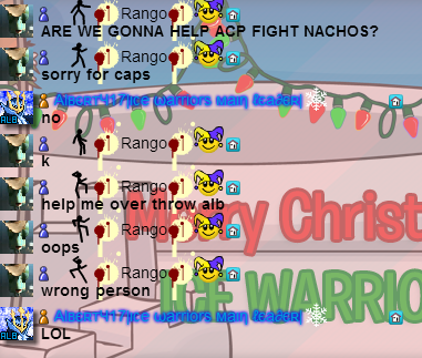 I was prepared to take the role of leadership on June 3rd, 2012, two days after the army turned 5 years old. After this momentous occasion, the Ice Warriors prospered much throughout the summer and even more in the fall, becoming very competitive against many other large armies. We won a few CPAC tournaments, such as the famous Legends Cup for a second time, as well as winning the Sweet 16 Tournament. We had a war with the Light Troops throughout the fall of 2012, winning most battles, also having on and off wars with the Pirates, and one large defense against ST. In December 2012, we took another significant rise and almost won the CPAC Christmas Chaos tournament, maxing 60+ Ice Warriors, only losing to the DW who were equal to our strength.