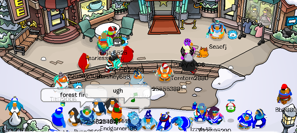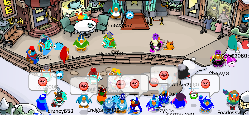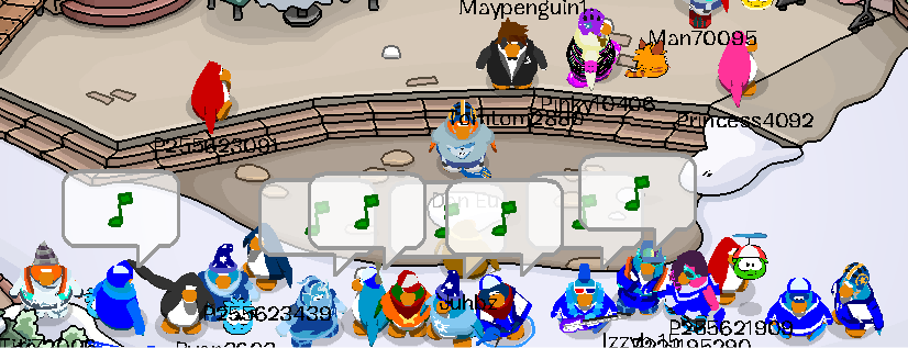 Today we logged on Slushy Town, with a 3 bar server. We maxed 18 and averaged 15, we could’ve did the skateboard tactic anyway. ;P Great job Ice Warriors!