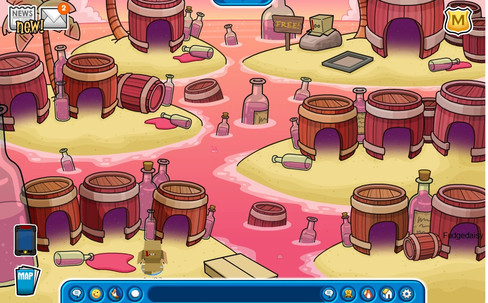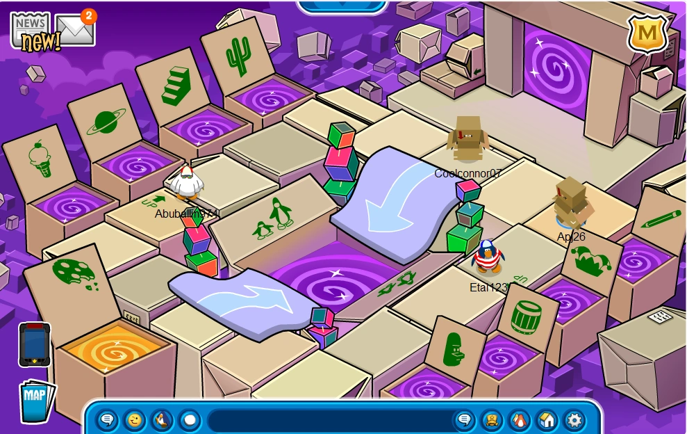 At the April Fool’s Day Party, boxes were all over the island and penguins could access a wide variety of different dimensions penguins could enter. The free item was the Blue Propeller Cap, which was located at both the Town and the Plaza.