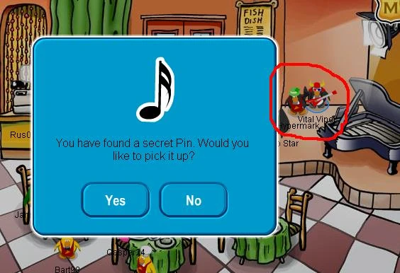 The other update in 2006 was a new pin, the Music Note Pin. It is Club Penguin’s 2nd pin and was the first pin to be hidden at the Pizza Parlour.