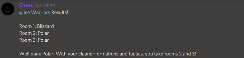 Thank you guys for coming! Remember to prepare for our next battles vs Silver Empire (Wednesday) and Help Force (Friday). Stay frosty with our discord. Much love!