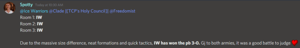 Today we logged on Alaska for an AUSIA practice battle vs Templars of CP. We won 3-0 by a massive size advantage, neat formations and quicker tactics. Amazing job once more warriors!