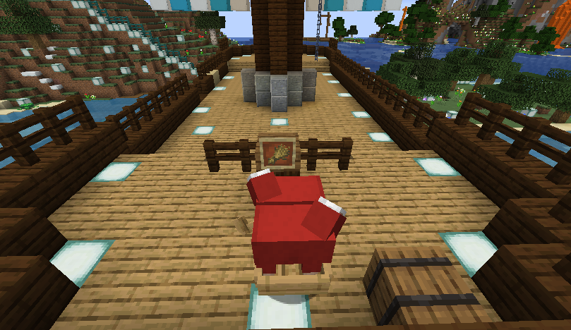 The Ship is a replication of Rockhopper’s Migrator from club penguin! Snow and I built the boat together with our captains being “Yarr” and “Mr. Snowman” the sheep! Inside of the ship we have storage, a casual lounge room, and our captain’s quarters, with the wandering trader, Rockhopper, with his parrot pals to keep him company.