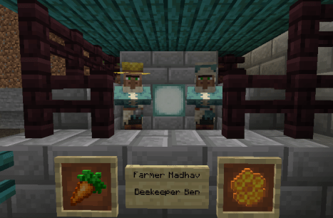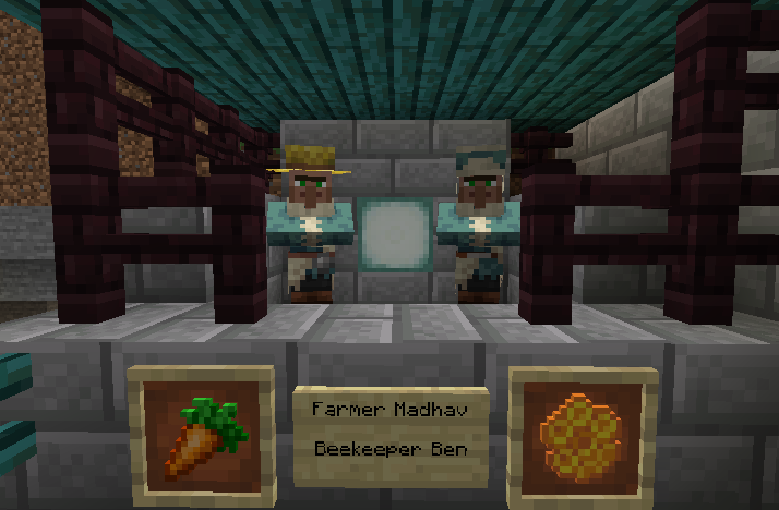 The farm we have was built by our former staff member and mod, Mae! She was one of our very first mods on the server and she built this adorable little farm (which has had some small adjustments throughout the months). Two storage sheds, our food garden, a horse stable, a sheep and cow-pen, and a chicken egg farm! In recent additions, we now have bees, Farmer Madhav and Beekeeper Ben, who sell everything you need to start a garden!