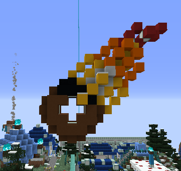 Kally: My favorite build in the Minecraft server is the flying bagel. I think it was our vet TurboTankz who built it, and it always reminds me of our vets and our creator Iceyfeet!! The bagelโs a bit burnt but it looks really cool!!