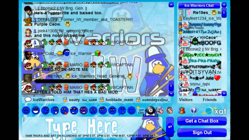 For those of you who do not know what xat is (pronounced zat), it is a website in which people can create different chat channels to communicate with each other. Before Discord, this was the primary way that Club Penguin armies communicated with each other, hosted events and battles, and fought many wars.