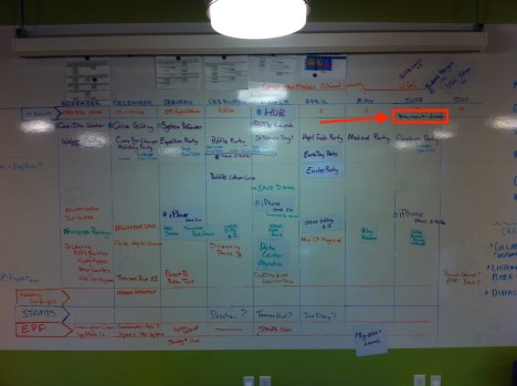 Even though the event was held in November of 2012, its story dates back to 2010. The Club Penguin team in Canada, where the main HQ was located, used to hold a major meeting involving the entire staff team once every 3 months. In those meetings, they would map out events for the following 3 months including parties, puffles, ninja updates, EPF missions, and more! In one of said meetings at the end of 2010/start of 2011, they planned in excessive detail what they wanted to launch in January, February, and March, with some potential ideas for the remainder of the year. Usually, these were kept on a large whiteboard in the meeting room of the HQ and this time it ended up being leaked on Twitter.