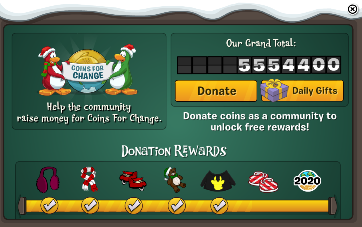 This year’s coins for change has a lot of awesome prizes! Most of which are already unlocked. Dont forget to pick them up and check out the awesome daily gifts!!