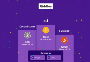 The Voice Chat Games division had a busy week with a total of 6 events! We had 3 Kahoots (Riddles, Club Penguin and a Music Quiz), a movie night, a Jackbox game session and Karaoke. A huge thank you to our hosts Clindsz, Burger, qtBen, IceQueen, Kally, Subster and Krosive! The riddles Kahoot was the event that had the most attendees, below is a photo of the winners! Let us know in the suggestions channel or in the comments below on what Kahoot quizzes and what VC games you’d like to see more of.