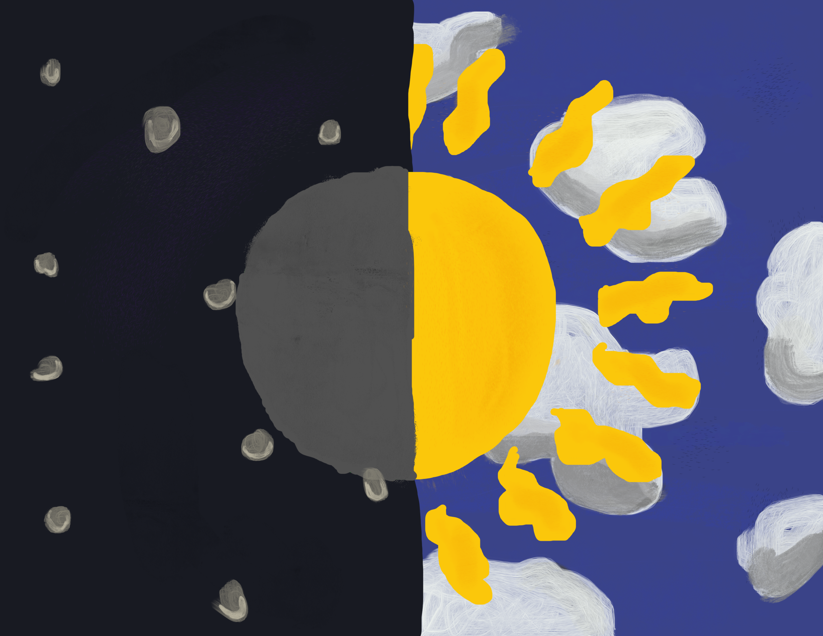 HeadChicken: Hey Nathan, This sun and moon piece is so cool! What program did you use, and is there any inspiration behind this digital piece?