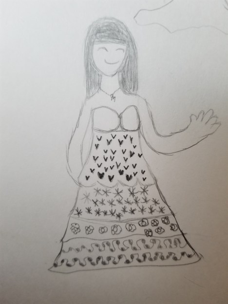 The following pretty fashion sketch is by our Marshall, Queenzie!