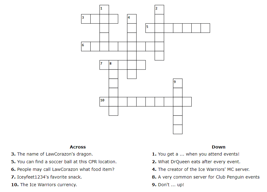 Filed under: Ice Warriors CP, ice warriors of cp | Tagged: Chevy, Crossword, DrQueen, emma, Levelz, steph, Sunday Funday, Word Scramble |