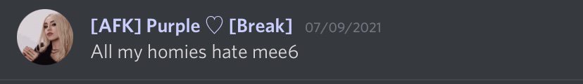Trails: MEE6 is the sweetest person alive that I’ve ever seen, so kind and funny I can DIE for this person :uwu:. He’s really good at cooking. He cleans and makes sure everything is organized and that nothing is lost -wink wink- He makes sure everyone in every server is following the rules or else u get a warning, duh! And that puts people on their place not to break any rules (: MEE6 is the most wonderful person alive, no one can change my mind and no one can ban him. If u do , you ban me too , fight me. There is nothing bad about MEE6 my beloved!