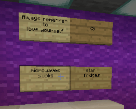 Purple: One of my favourite moments on Minecraft would probably be when Chevy used to break all my windows it was so funny