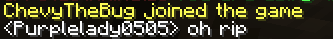 Jean: As you all might know, we have our own little MC Dork Pet. Her name is none other than Chevy. She once fell off a cliff in MC and said the chicken was at fault. The chicken has been charged for the crime. The chickens body has been built on top of the KFC. Perhaps this crime was the origin of KFC’s creation. Anyway chevy is a dork and a noob uwu owo