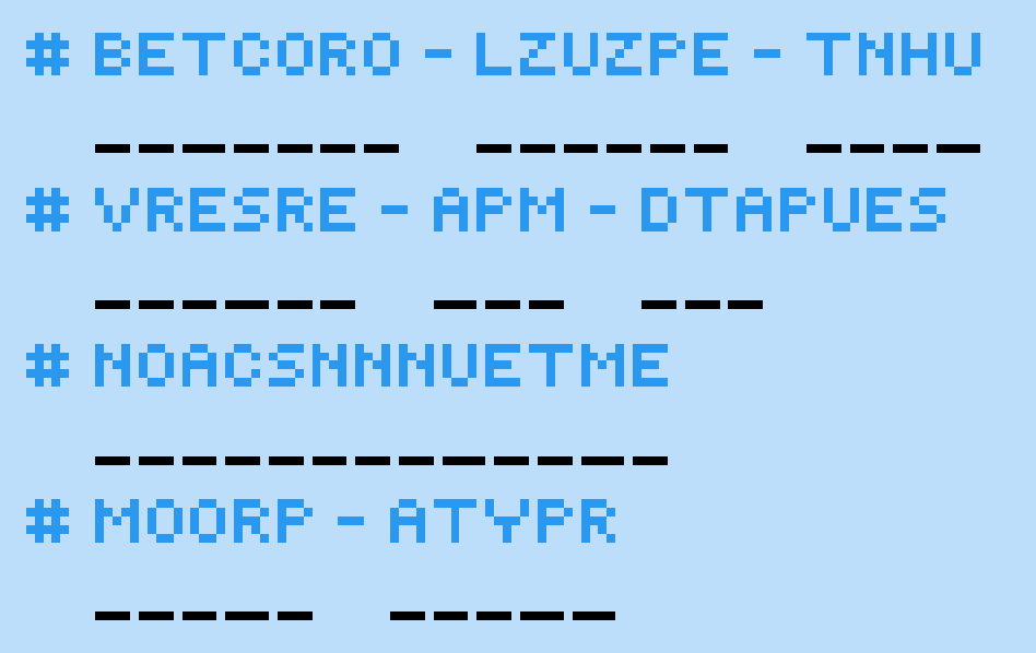 Up next is a Word Scramble. Here we have four different scrambled channel names that are currently seen in the IW server. Unscramble each of these to decipher the channels.