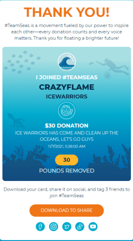 On Saturday, Ice Warriors hosted their #TeamSea event to bring awareness about keeping our oceans, rivers, and beaches clean! IW was able to donate $80 USD towards the cause. Thank you to Crazyflame who donated a dollar for every troop who logged on and to DrQueen for covering the balance with additional funds + extra donations on behalf of the staff team. Thank you to LawCorazon, TheNathanBoy & Penguin for contributing as well! Some things are just bigger than penguins.