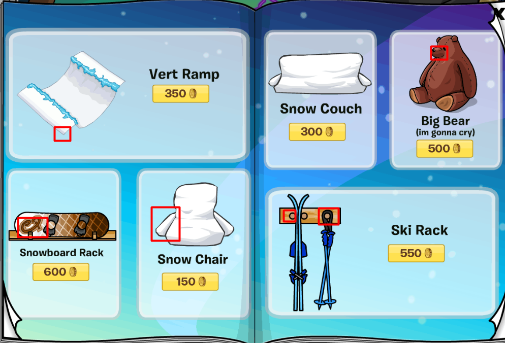Hello Ice Warriors! As the days become shorter and the weather becomes colder, the closer we get to the winter holidays! Now, not everybody celebrates the same way but why not prepare for the winter months with the new furniture? Keep your igloo nice and cozy or make a winter wonderland! Just remember, don’t freeze up in your own igloo! Continue reading to see what this catalogue has to offer!