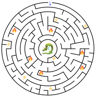 Up next, we have a Maze Puzzle. In a quest to bring honor to your loved ones, you’re on a journey to reach an almighty dragon, but said dragon is known for causing dangerous storms and wildfires. Navigate through the maze to reach the dragon while avoiding its disasters. (Might this dragon be Bert?)