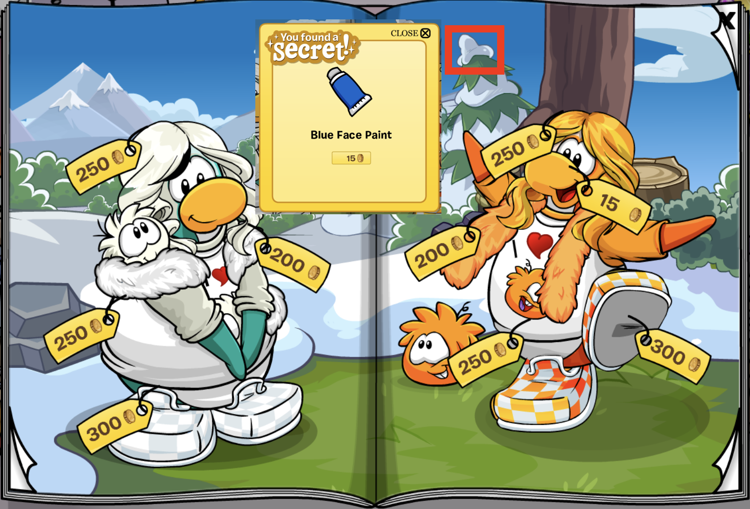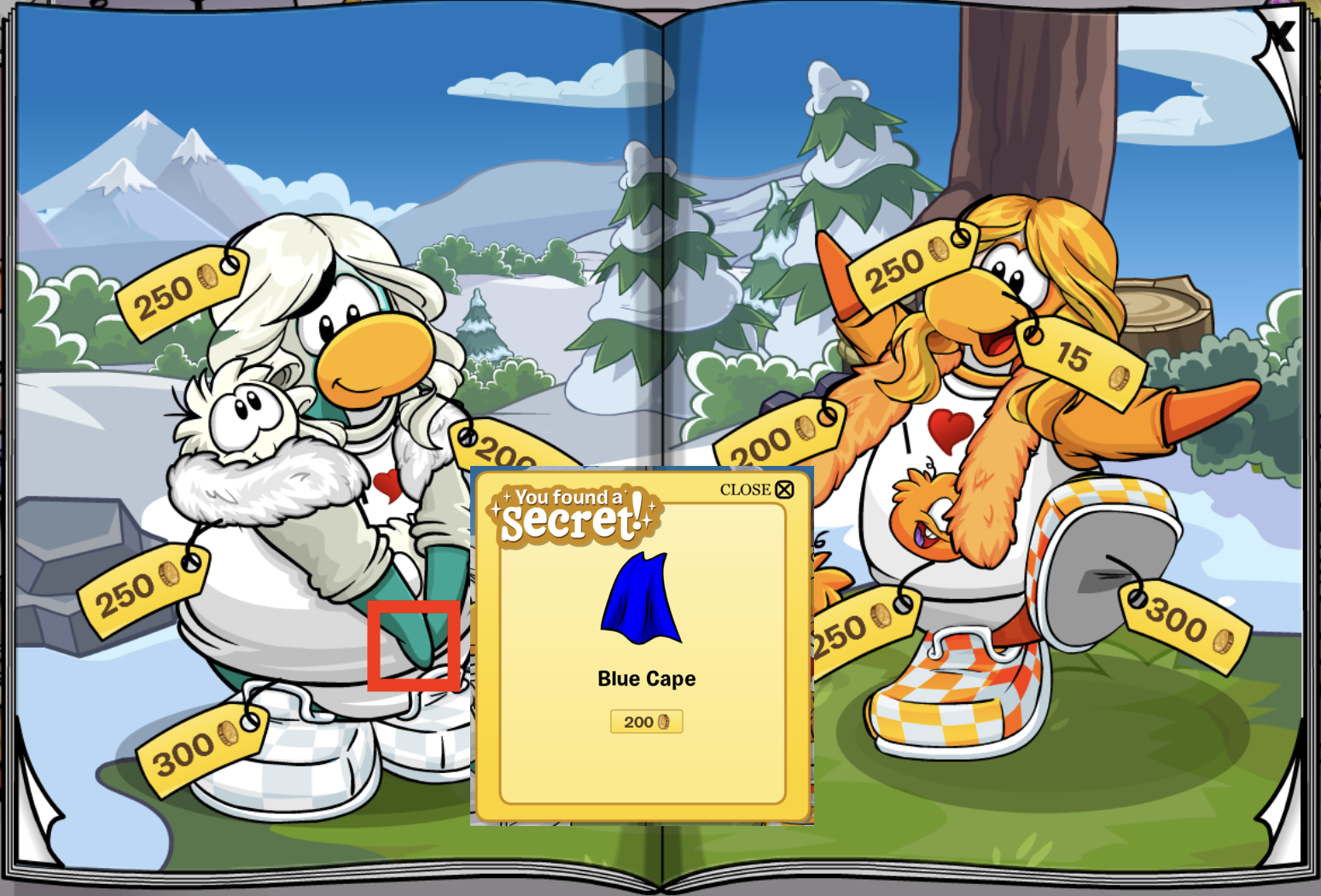 Luckily, the Blue Cape is currently also in the Gift Shop Catalogue! You can find it on the same page as the face paint, but this one you can find on the hands of the teal penguin! Although it is in the official uniform, many members choose to replace this with a necklace or something similar!