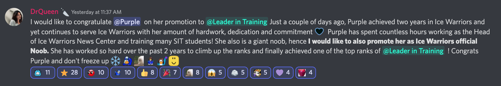 HeadChicken: When it comes to tournaments, the Ice Warriors are always successful! We have won many and it’s a really big accomplishment. Even if we don’t win at times, it’s still nice to know how hard our Troops, Staff, and HCOM have worked!