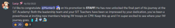 That’s the end of this post and the anniversary week! Thank you to all the troops, staff, leaders, IW Veterans in joining in this year’s IW anniversary party. Don’t forget to come to today’s HoF Induction Ceremony #πβhall-of-fame, many new people coming into the Hall of Fame and the next IW Legend?! As always,