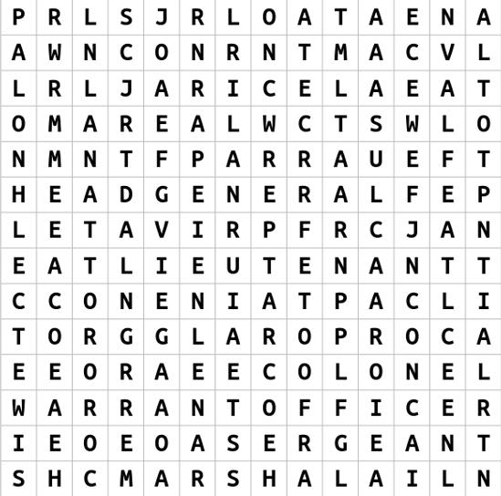 So, here’s our first game and it is a Word Search, there are some names of our IW ranks in the Word Box. Find those words in the Word Search to finish this game!