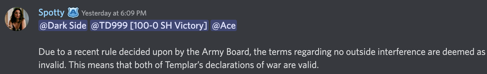 Within just being around in this army community for 2+ years, there are two things that I have witnessed that make me question humanity in this community: Applebruh emote and StrawHats (SH) attempt to declare war on every army in the community. Let’s catch everyone up. On September 23rd, 2022, Templars of CP declared war on Strawhats and Mercenaries, but they didn’t accept these terms due to their “ongoing-conflict war” with Mercenaries. Keep in mind that these two armies have been at war with each other for some while now and yet, have not ONE held a single war battle between the two respective armies. As a result, they were crying say it was invalid.