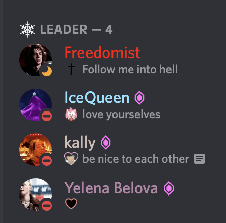 Kris: NOOBTINA!! I am grateful to have someone like you as part of my life! You are the sweetest little flower I met, and love messing around in IW with you! You are such a strong woman and give me boss-bitch working vibes, which, yes, SLAY. Please make sure that you occasionally shank Freedomist for me :))) I love you slay girl boss! Enjoy college and I will send you more veggie lasagna.