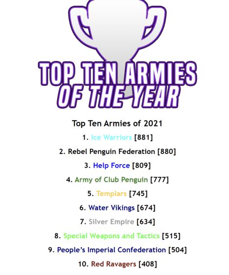 To my amazing allies: Rebel Penguin Federation, Water Vikings, Help Force, and Silver Empire, Thank you for your support and the memories ❤