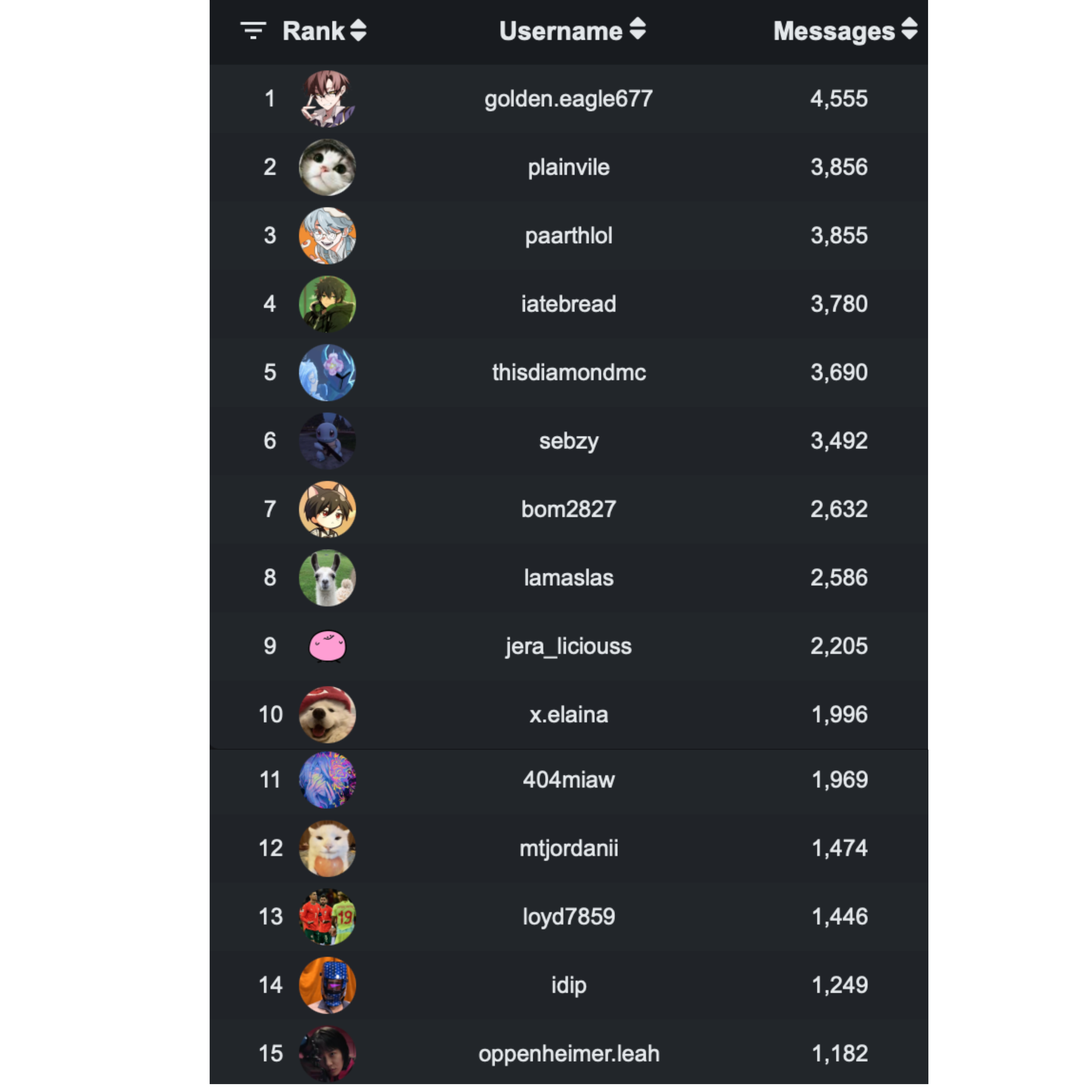 Moving onto our Chatters of the Week! In first place we have Gold, in second we have Plainvile and in third we have Paarth! All three individuals managed to rack up over 3,800 messages in the past week, which is AMAZING to see! We appreciate all the time you guys put into IW. Not a lot of people nowadays have time for IW due to school, work or other things in life and I’m sure you guys get very busy sometimes but still manage to make time to chat with us in the server and that needs to be acknowledged! Thank you for chatting with us this past week ā¤
